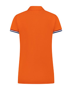 Lemon & Soda piqué dames poloshirt met korte mouwen. De polo heeft een mooi vallende pasvorm en is verkrijgbaar in orange met de Nederlandse vlag bij de mouw boord.