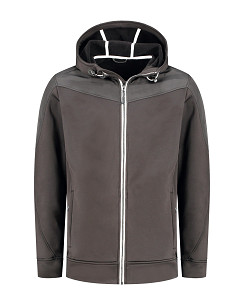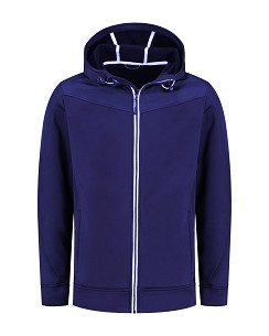 Lemon & Soda unisex jacket met capuchon en doorgestikte schouder en mouwstukken. Zakken met ritsen in de zijnaad. Contrast wit tape bij rits, binnenkant capuchon en contrast elastiek in de capuchon.
