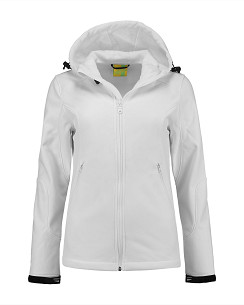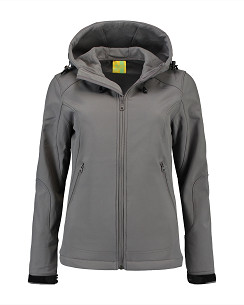Lemon & Soda softshell jack voor dames met capuchon en twee zakken met rits van een hoogwaardige kwaliteit. Softshell is te borduren en hierdoor is het jack in te zetten als gepersonaliseerde promotiekleding of bedrijfskleding.