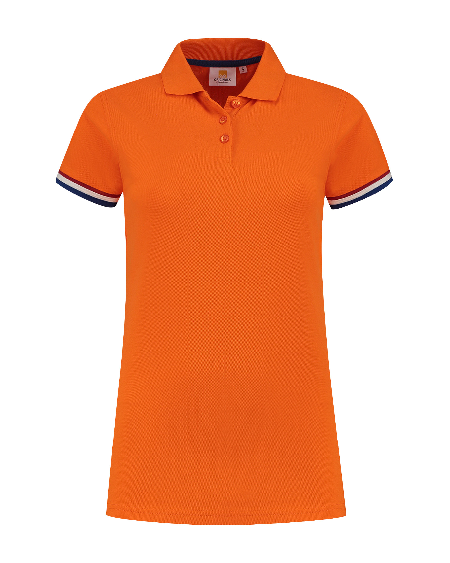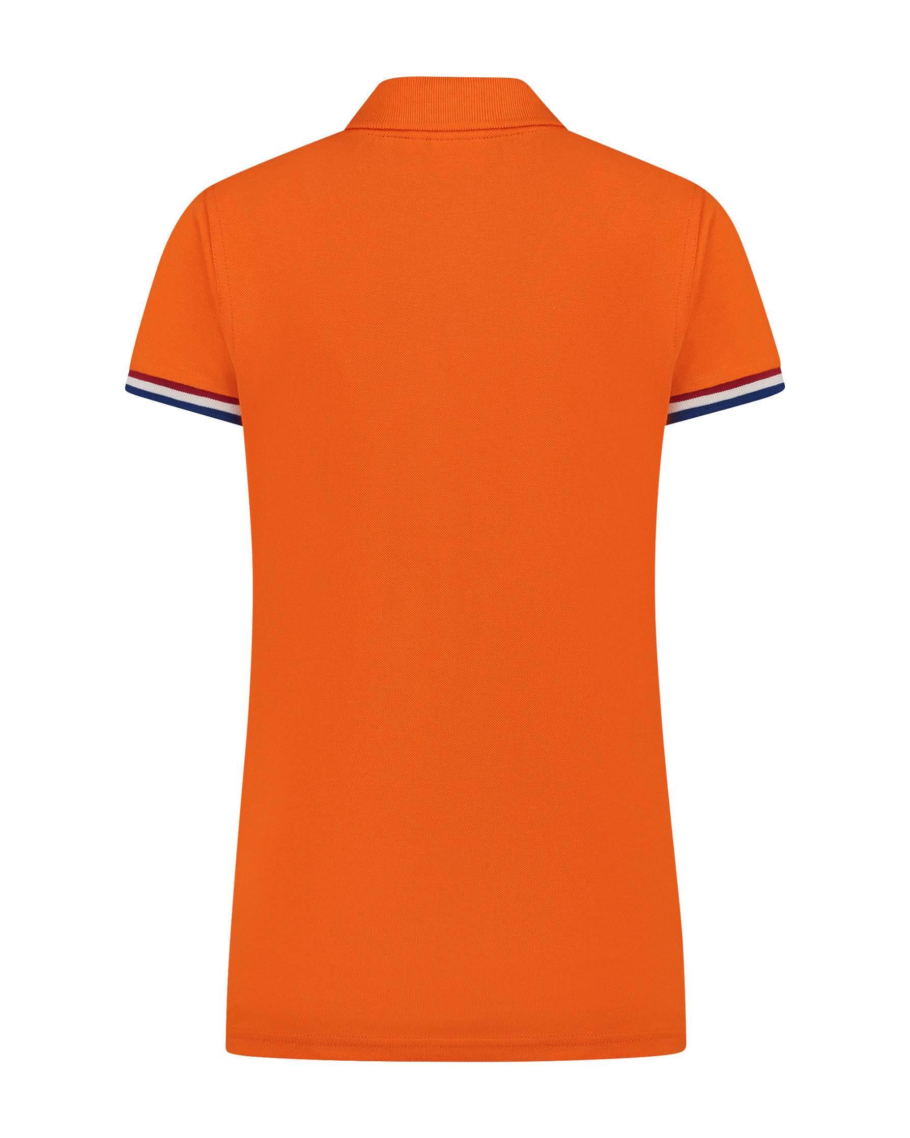 Lemon & Soda piqué dames poloshirt met korte mouwen. De polo heeft een mooi vallende pasvorm en is verkrijgbaar in orange met de Nederlandse vlag bij de mouw boord.
