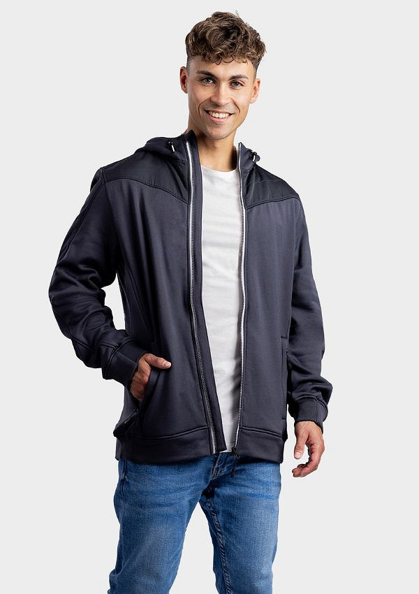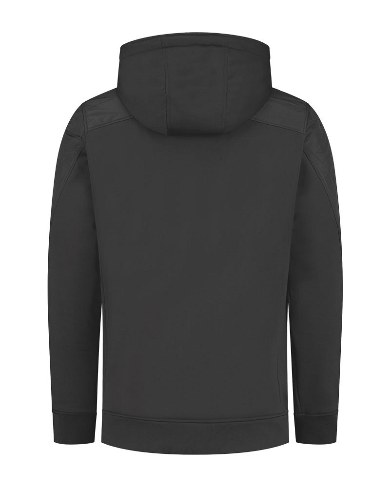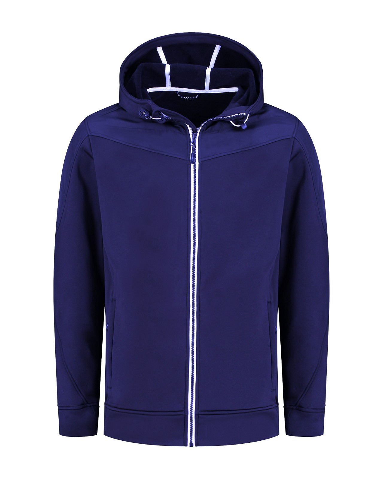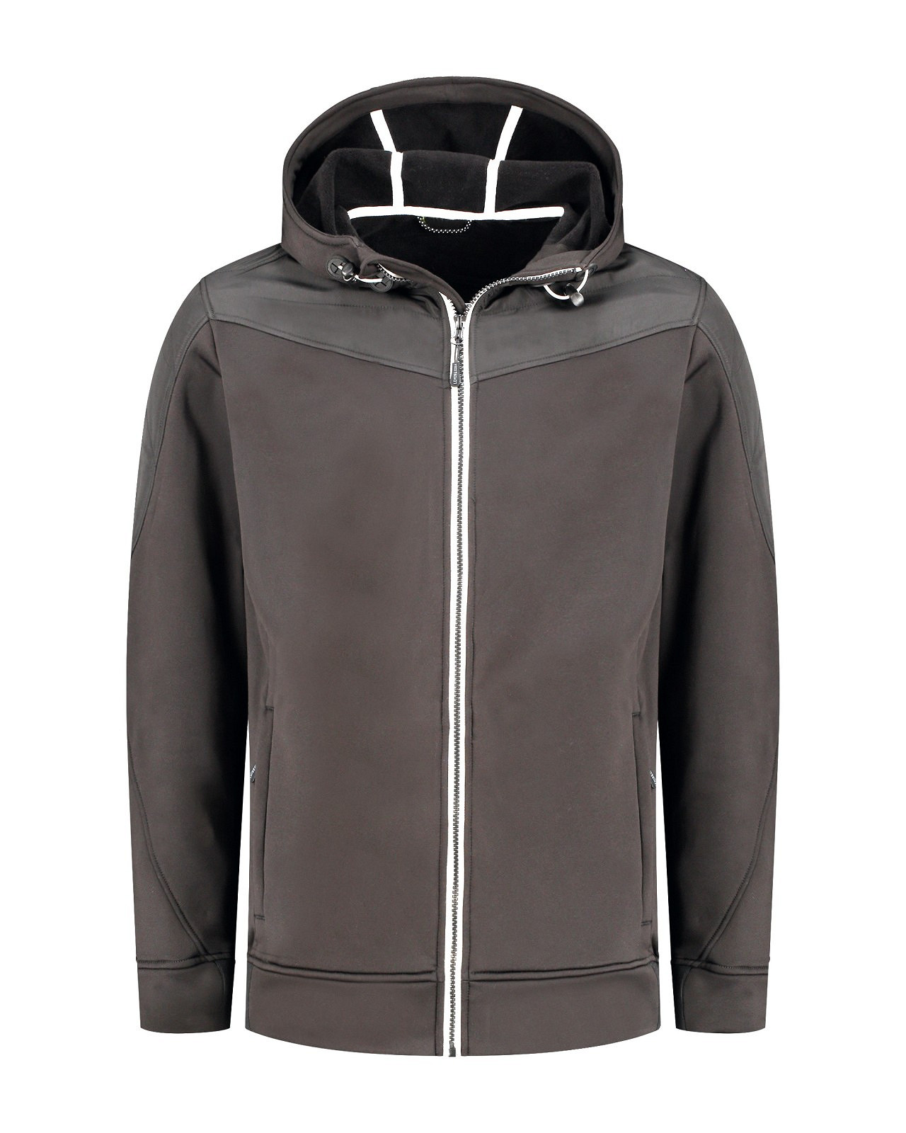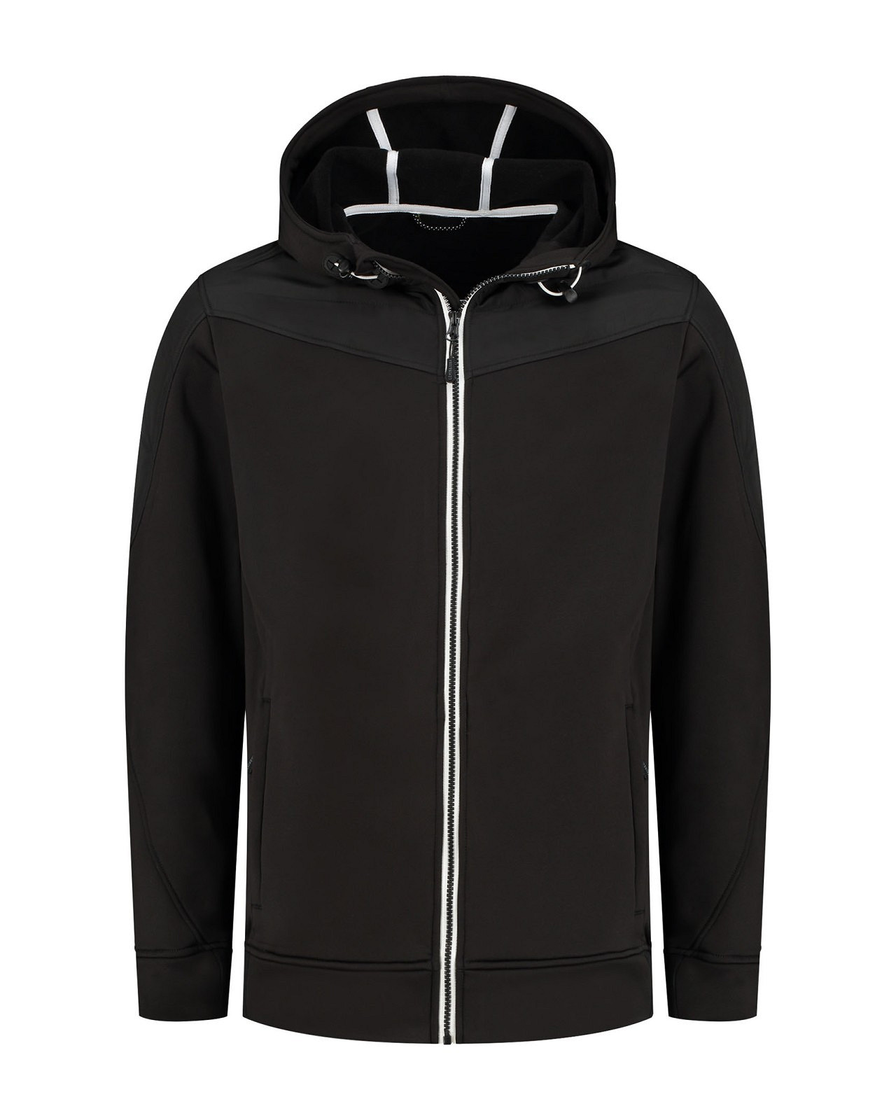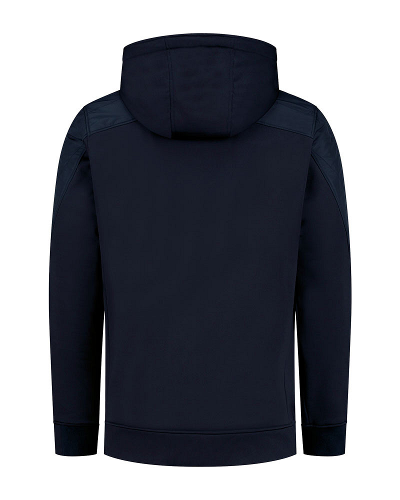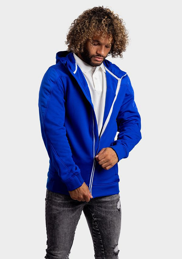 Lemon & Soda unisex jacket met capuchon en doorgestikte schouder en mouwstukken. Zakken met ritsen in de zijnaad. Contrast wit tape bij rits, binnenkant capuchon en contrast elastiek in de capuchon.