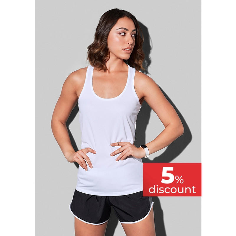 Stedman Tank Top mesh Active-Dry voor dames. De tanktop is gemaakt van een elastische stof, hals en armgaten afgezet met een band.